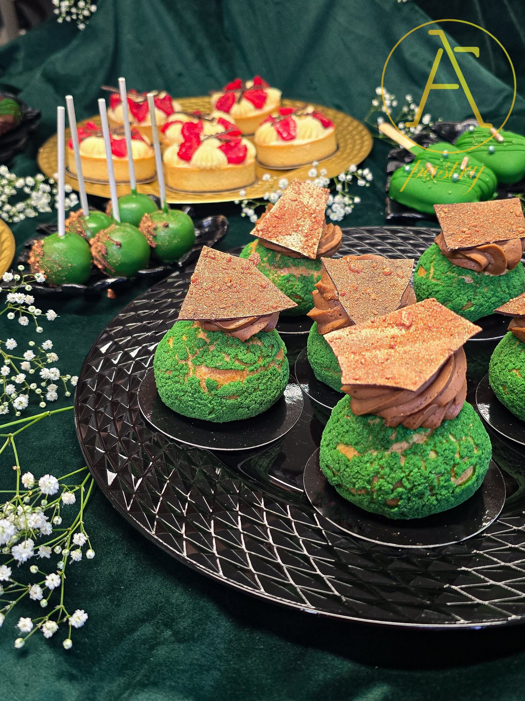 Na Szkoleniu poznasz jak wykonać 7-8 różnych słodkości od zera(mi. Babeczki, cake pops, bezy, tartaletki, monoporcje, ptysie, cakesicles, donuty). Wiele rodzajów ciast, kremów, wykończeni, połączeń smakowych tak by całość pięknie zaprezentować jednolitej kolorystycznie formie Słodkiego Stołu.